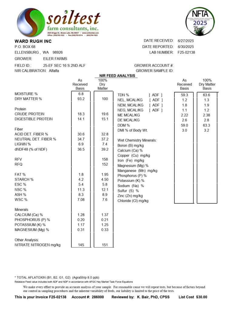 • We guarantee the lab results are an actual representation of the hay you purchase! We always use the avg mean lab analysis results and not just the best.
