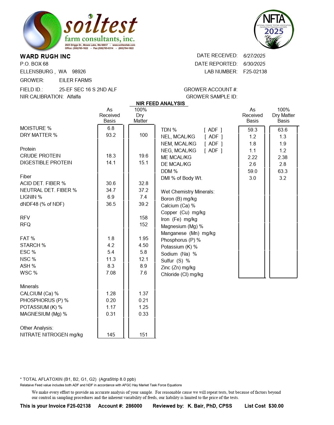 • *We guarantee our hay core samples only go to one certified independent lab to obtain accurate results and not multiple labs in order to get the best results.